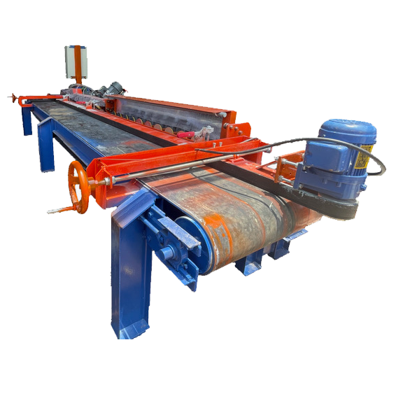 Máy được trang bị thước cơ dùng băng tải và có 2 băng tải. Ngoài ra, máy còn có tính năng đặt phôi tự động, giúp tiện lợi trong quá trình vận hành.